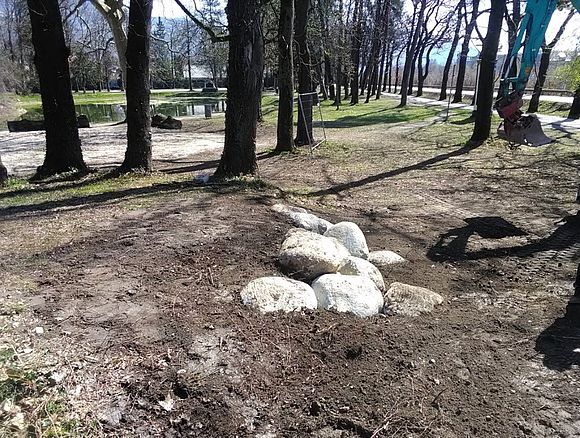 Aber auch geschützte Amphibien und Reptilien wurden im Park und dessen Umfeld nachgewiesen. So bietet die Umgebung des Saunagebäudes gute Verstecke und Lebensraumstrukturen etwa für die Äskulapnatter, am Teich hat sich neben Grasfrosch, Erdkröte und Teichmolch in den letzten Jahren eine Population des Laubfrosches etabliert. Im Zuge der Umgestaltung des Volksgartens wird daher auch die Herpetofauna berücksichtigt. Neben einer zeitlichen Abstimmung der Maßnahmenumsetzung, werden mögliche Lebensraumstrukturen vor den Eingriffen abgesammelt und sind außerdem eine Reihe von Verbesserungen an Land und im Gewässer vorgesehen. Dazu zählen beispielsweise die Optimierung eines alten Kellergewölbes als Winterquartier, die Anlage von Legesteinmauern, Holzstapeln und Eiablagehäufen an besonnten Standorten. Am Teich werden für den Laubfrosch durch Pflanzung zusätzliche Rufplätze geschaffen und der Teich mit Schwimmblattpflanzen aufgewertet. Trotz Corona-bedingter Verzögerungen wurden bereits einige der Maßnahmen in Angriff genommen. Den Stadtgärtnern gilt Dank für das Verständnis und ihren Elan bei der Umsetzung der Lebensraumverbesserungen. (sw)